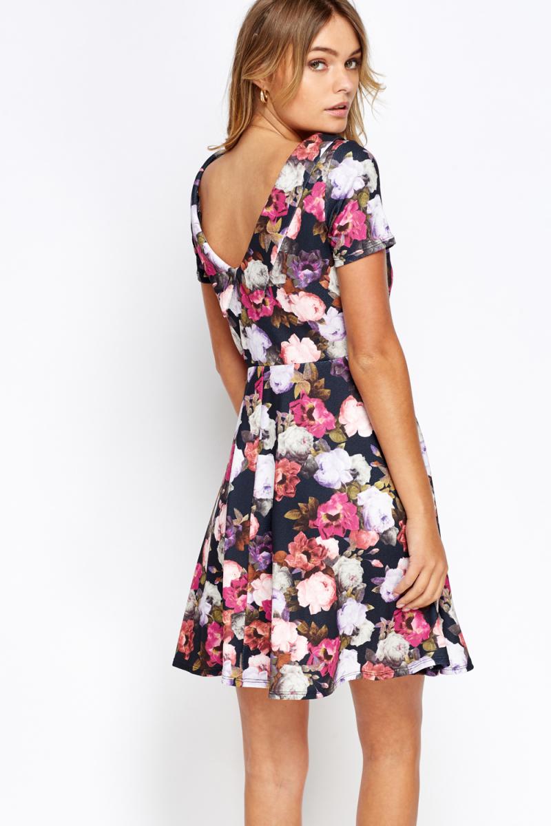 Collard Floral Skater Dress